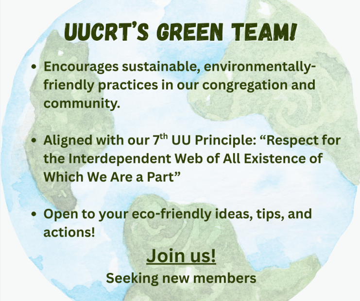 We are proud to announce that we have chosen to take part in the Green Sanctuary 2030 Initiative! You can find out more about this initiative here: https://www.uua.org/environment/green-sanctuary