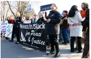 WOMEN IN BLACK is a worldwide network that conducts vigils promoting peace and social justice. Its local chapter gathers every Saturday from 12:30 to 1:30 in front of Elting Library, 93 Main Street in New Paltz, currently protesting Israel's war on Gaza.