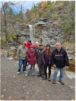 UU hikers at Awosting Falls on the October hike at Miniwaska State Park.